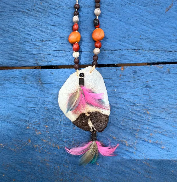 As peças artesanais produzidas pela aldeia — como prendedores de cabelo, brincos e outros adornos — são mais do que simples objetos de decoração. Elas carregam a história, a sabedoria e a resistência do povo Karajá.